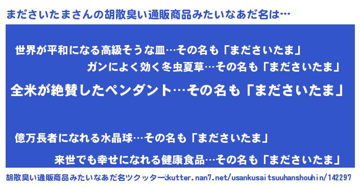 | 欧米人風あだ名 | 『ウサインまださいたま』 |
