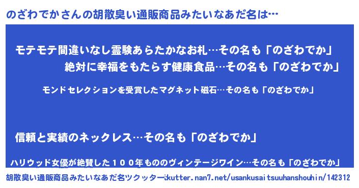 | ヘコむあだ名 | 『のざにー』『のざわでか(苦笑)』 |
