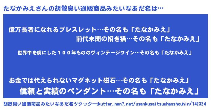 | 意味不明あだ名 | 『住所不定無職たなかみえ(3歳)』 |