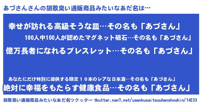 | 欧米人風あだ名 | 『マイケルあづさん』『ダニエルあづさん』 |