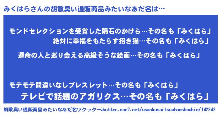 | 意味不明あだ名 | 『みくはらフォーエバー』『自称みくはら』 |