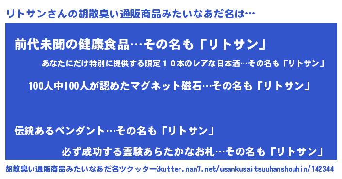 | ヒーロー風カッコイイあだ名 | 『正義の使者リトサン』『ネオリトサン』 |