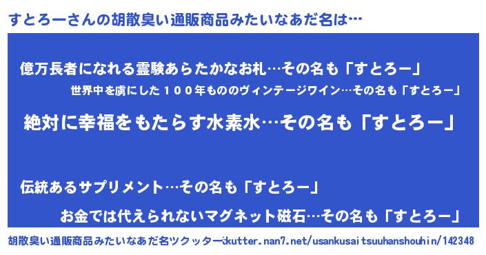 | ヘコむあだ名 | 『すとろー(遠い目)』『すとっふぃ~』 |