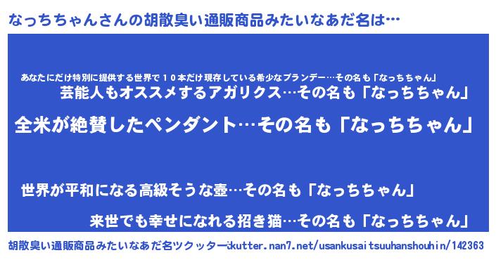 | 意味不明あだ名 | 『とにかく怪しいなっちちゃん』 |