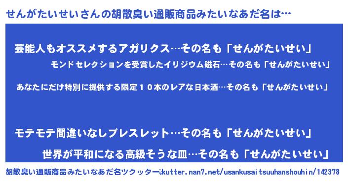 | 意味不明あだ名 | 『住所不定無職せんがたいせい(39歳)』 |
