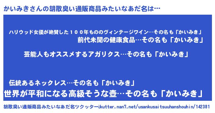 | 意味不明あだ名 | 『自称かいみき』『かいみきフォーエバー』 |