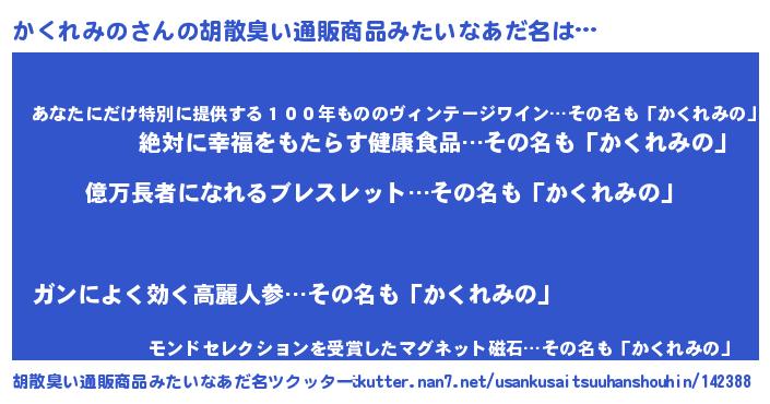 | ヘコむあだ名 | 『かくにー』『かくれみの(笑)』 |