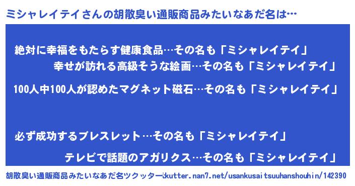 | ヒーロー風カッコイイあだ名 | 『正義の使者ミシャレイテイ』 |