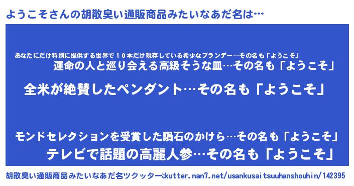 | 男性向けラノベタイトル風あだ名 | 『ようこその嫁は女の子じゃないと思った?』 |