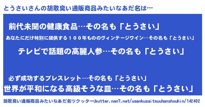 | ヘコむあだ名 | 『とうさい(笑)』『酢こんぶ』 |