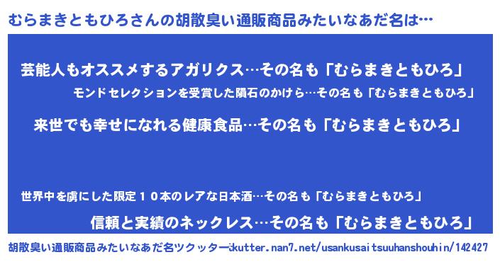 ヘコむあだ名 | 『むらまきともひろ(爆)』『むら太郎』 |