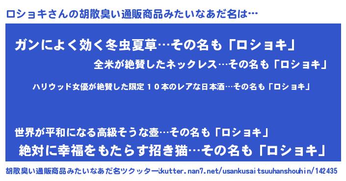 | 恥ずかしいあだ名 | 『ロショキデラックス』『ロシちん』 |