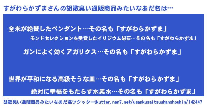 | 伝説のあだ名 | 『孤高の僧侶すがわらかずま』 |