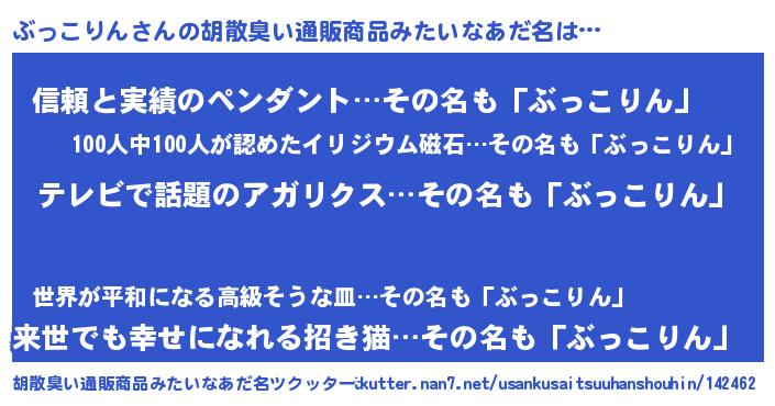 | 意味不明あだ名 | 『自称ぶっこりん』『永久保存ぶっこりん』 |