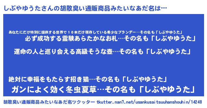 | 意味不明あだ名 | 『しぶやゆうたフォーエバー』 |