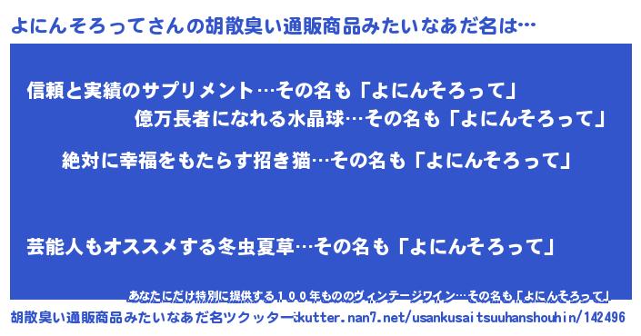 | ヒーロー風カッコイイあだ名 | 『ネオヨニンソロッテ』『黄金騎士ヨニ』 |
