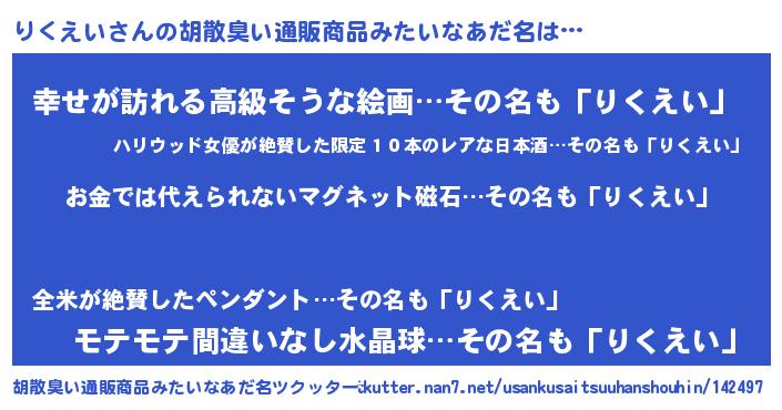 | ヘコむあだ名 | 『なまこ酢』『りくっふぃ~』 |