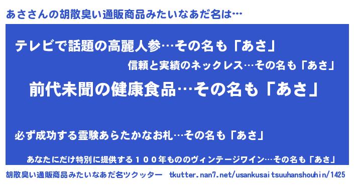 | 意味不明あだ名 | 『つくし科あさ属』『永久保存あさ』 |