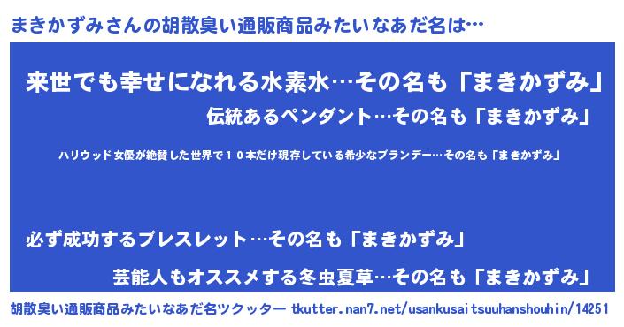 | ヘコむあだ名 | 『まきかずみ(苦笑)』『まき太郎』 |