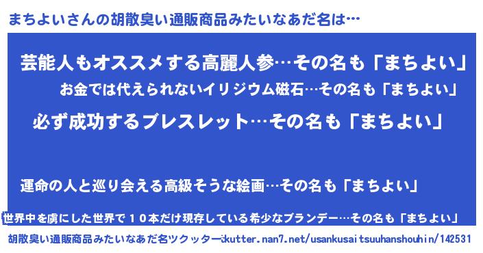 | 欧米人風あだ名 | 『マイケルまちよい』『ダニエルまちよい』 |