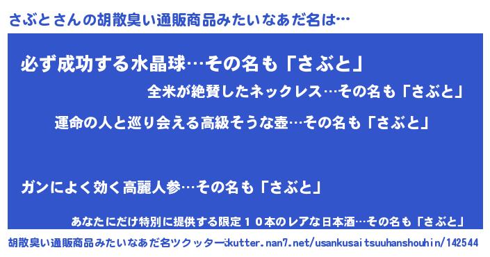 | 恥ずかしいあだ名 | 『さぶっちょ』『プリティーさぶと』 |