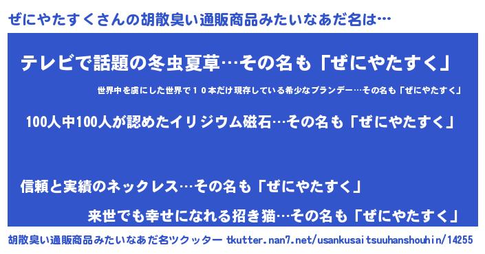 | 欧米人風あだ名 | 『トリンドルぜにやたすく』 |