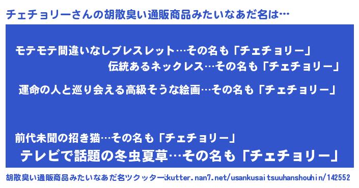 | ファンタジー風あだ名 | 『エターナルチェチョリーー』 |