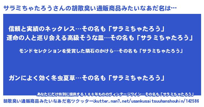 | 意味不明あだ名 | 『ヨモギ科サラミちゃたろう属』 |