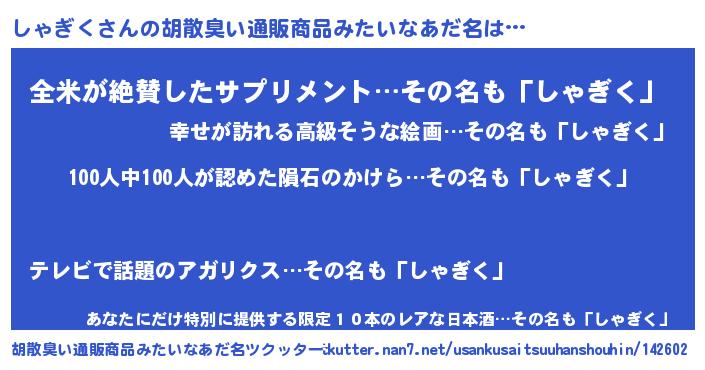 | ヒーロー風カッコイイあだ名 | 『正義の使者しゃぎく』『天弓騎士シャ』 |