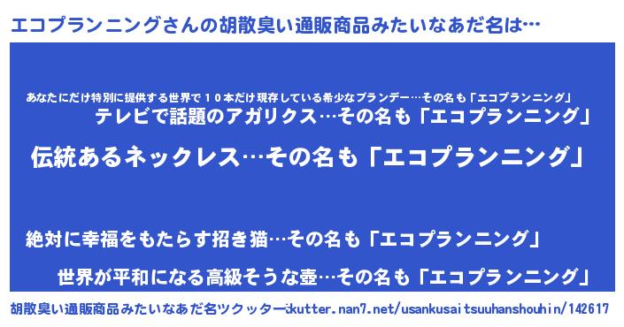 | 意味不明あだ名 | 『とにかく怪しいエコプランニング』 |