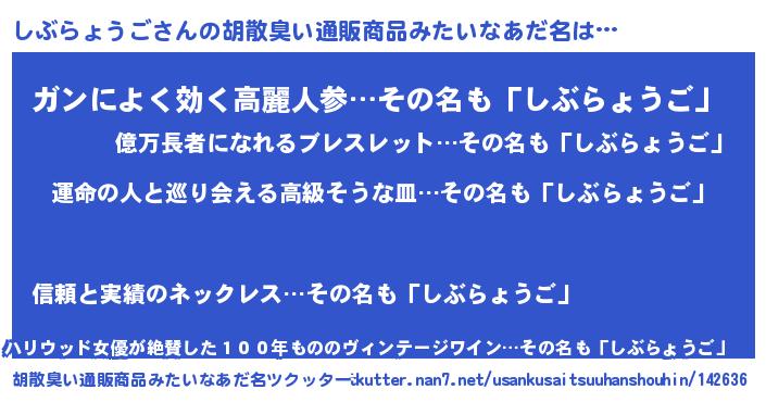 しぶらょうごさんの胡散臭い通販商品みたいなあだ名をツクッター!