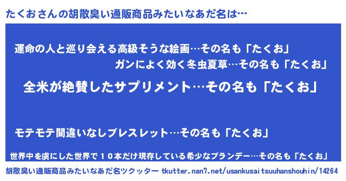 | 意味不明あだ名 | 『とにかく怪しいたくお』『自称たくお』 |