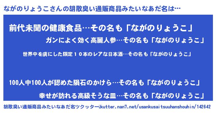 | 意味不明あだ名 | 『住所不定無職ながのりょうこ(41歳)』 |