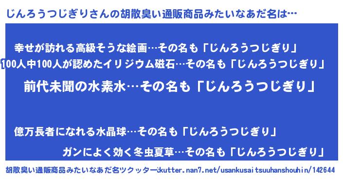 | 意味不明あだ名 | 『永久保存じんろうつじぎり』 |