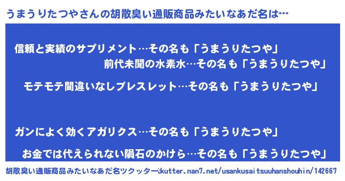 | ヒーロー風カッコイイあだ名 | 『スーパーウマウリタツヤ』 |