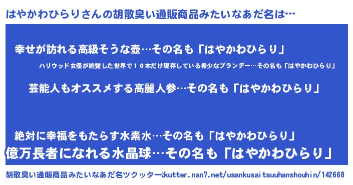 | 意味不明あだ名 | 『自称はやかわひらり』 |