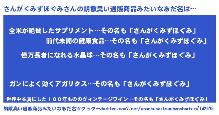 | 男性向けラノベタイトル風あだ名 | 『サンガクミズホグミアートオンライン』 |