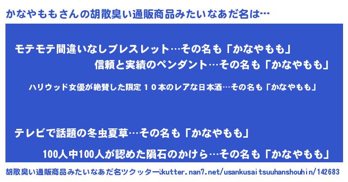 | 意味不明あだ名 | 『住所不定無職かなやもも(39歳)』 |