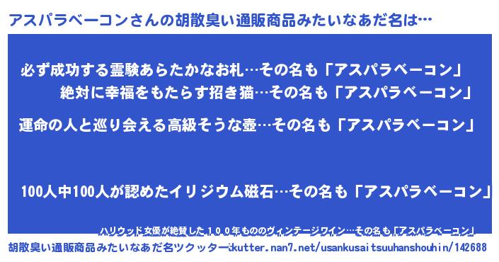 | 意味不明あだ名 | 『ヨモギ科アスパラベーコン属』 |