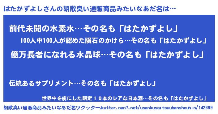 | ヒーロー風カッコイイあだ名 | 『スーパーハタカズヨシ』『仮面ハタダー』 |