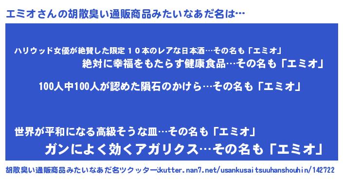 | 意味不明あだ名 | 『眠気覚ましガムエミオ味』『自称エミオ』 |