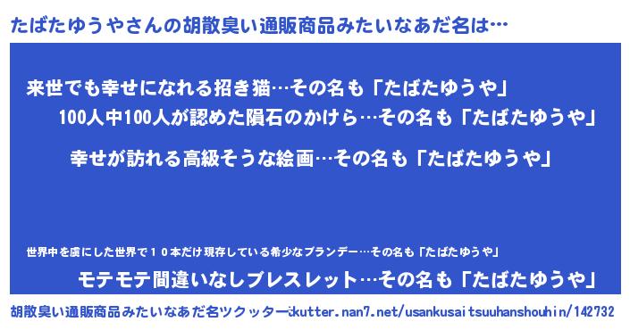 | 男性向けラノベタイトル風あだ名 | 『やはりたばたゆうやの青春ラブコメはまちがっている 』 |
