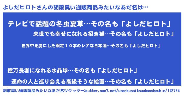 | ヒーロー風カッコイイあだ名 | 『仮面ヨシダー』『ネオヨシダヒロト』 |