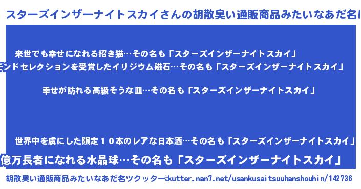 | 男性向けラノベタイトル風あだ名 | 『やはりスターズインザーナイトスカイの青春ラブコメはまちがっている 』 |