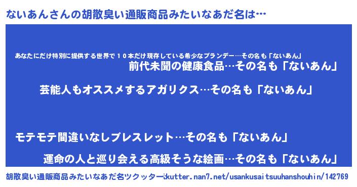 | 男性向けラノベタイトル風あだ名 | 『Re:ないあんから始める異世界生活』 |