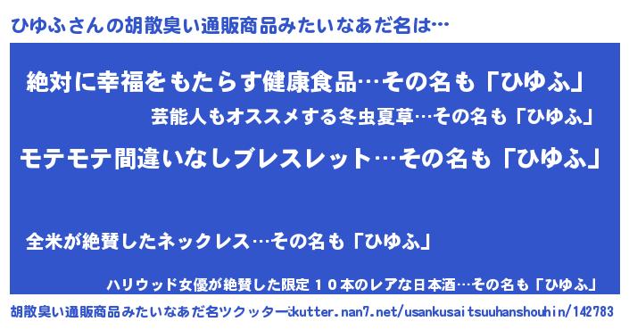 | ヘコむあだ名 | 『ひゆにー』『ひゆふ(爆)』『ひゆお』 |