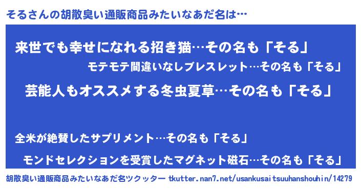 | ヘコむあだ名 | 『そる(震え声)』『そるにー』『豆乳』 |
