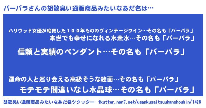 | 意味不明あだ名 | 『とにかく怪しいバーバラ』 |