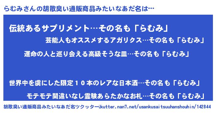 | ヘコむあだ名 | 『レバニラ』『らむ太郎』『らむもー』 |