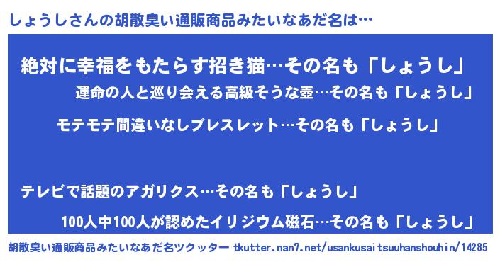 | ヘコむあだ名 | 『しょふぇ~』『しょうし(笑)』 |